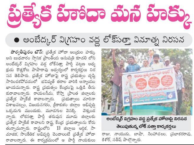 ప్రత్యేక హోదా కల్పించాలి: లోక్ సత్తా