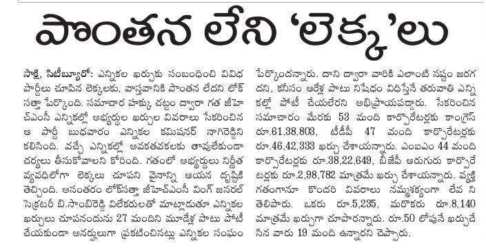 2009 బల్దియా ఎన్నికల్లో కార్పొరేటర్ల ఖర్చు రూ.1.54 కోట్లు