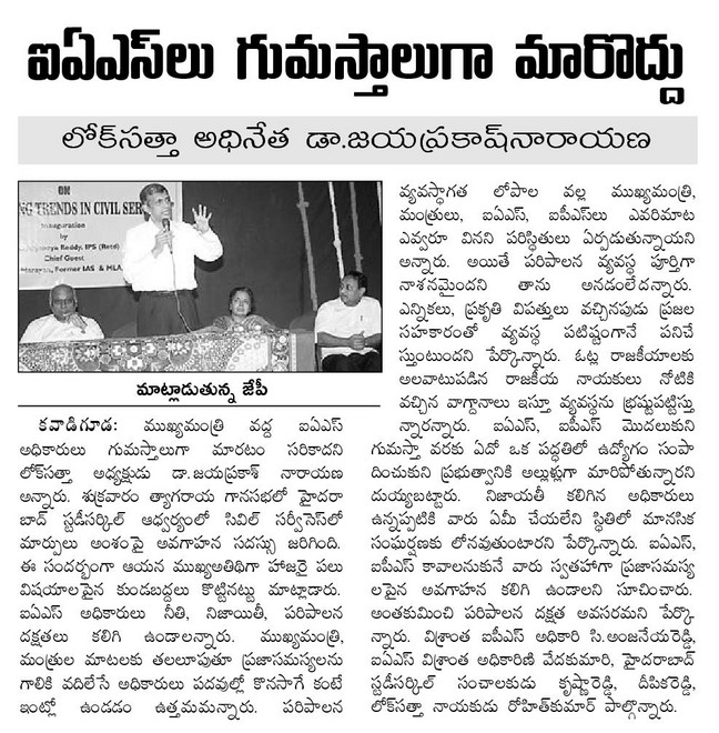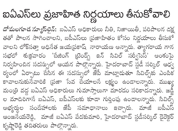 ఐఏఎస్ లు ఐపీఎస్ లు నీతి, నిజాయితీ పరిపాలనా దక్షత కలిగి ఉండాలి Courtesy: Namasthe Telangana Saturday, November 3, 2012 - 12:17