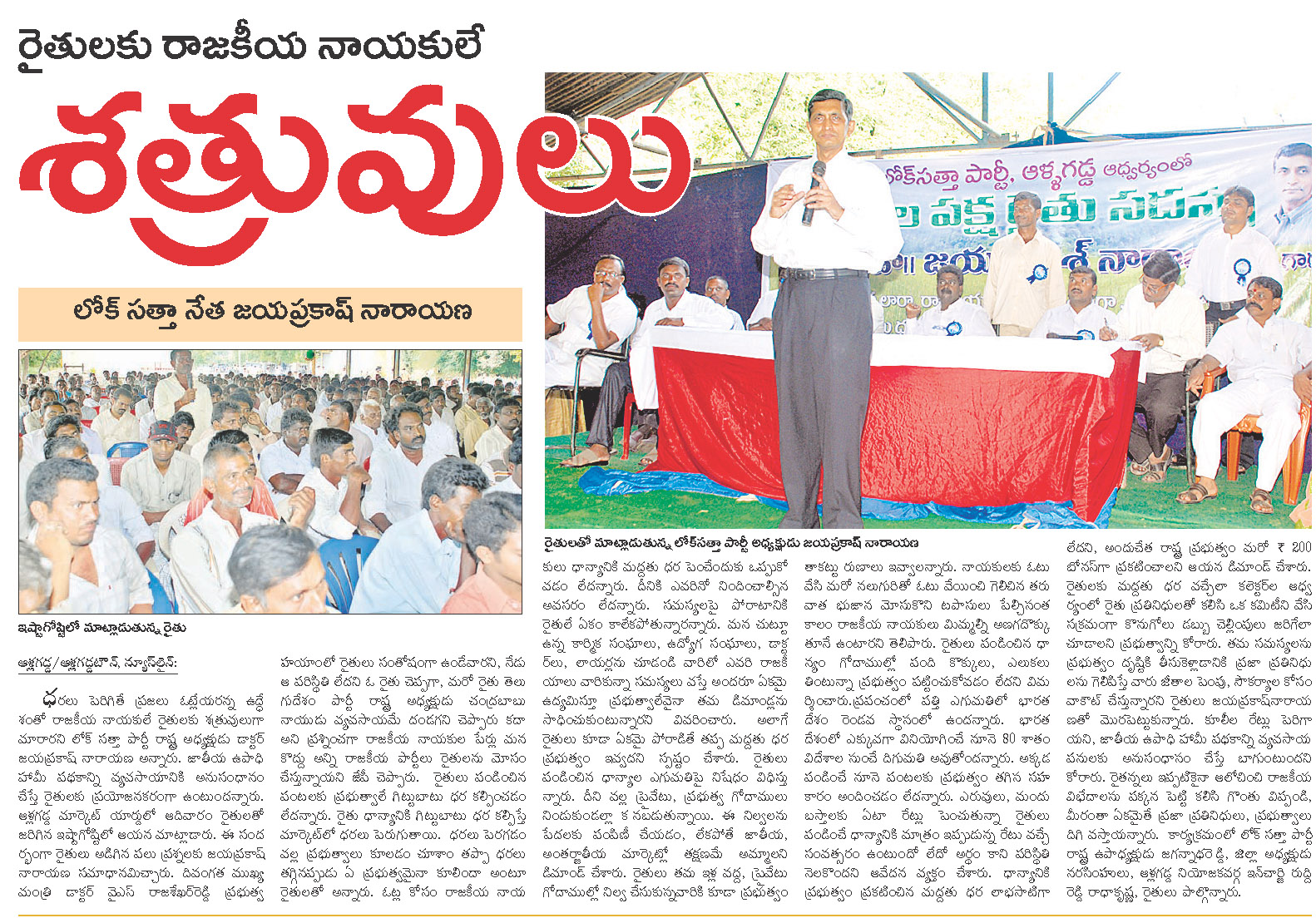 Dr.JP With Farmers At Mydukuru (Eenadu)
