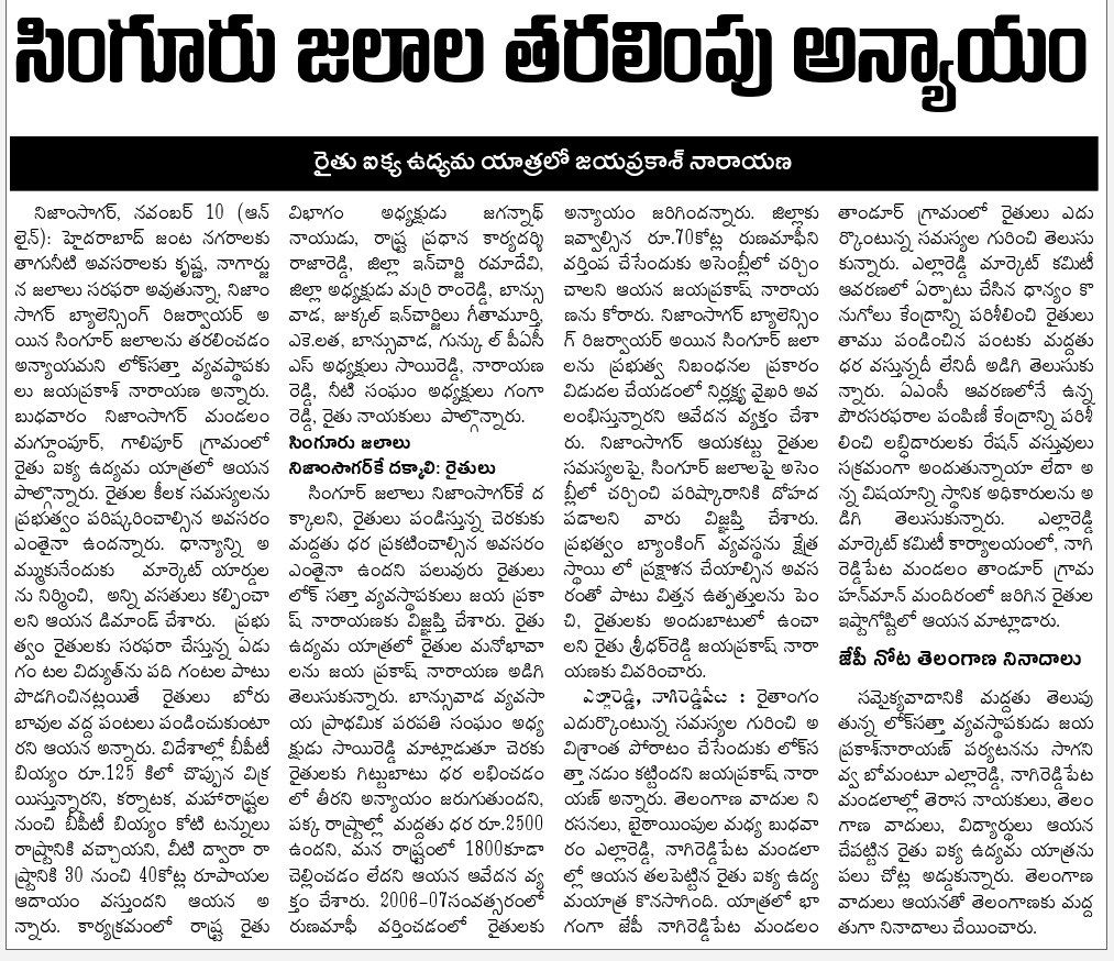 Dr.JP With Farmers at Lingampeta (Andhra Jyothy) Courtesy: Andhra Jyothy Thursday, November 11, 2010 - 19:02