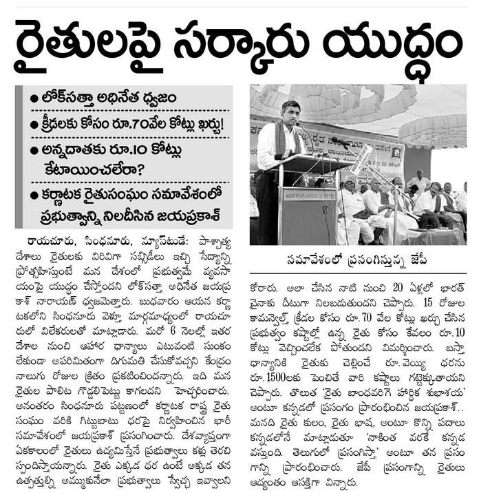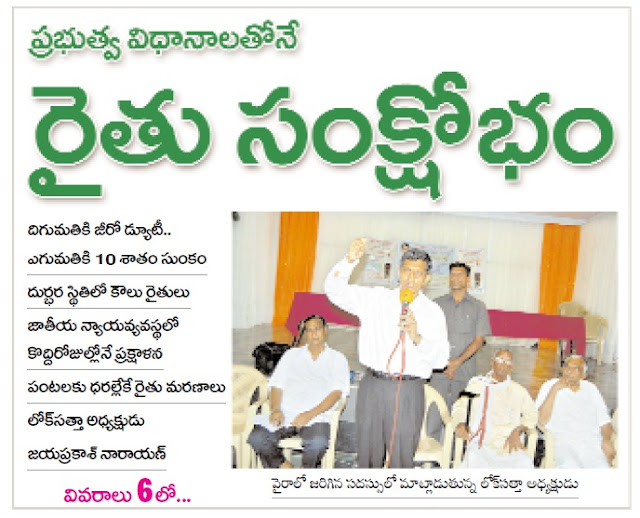 Dr.JP With Farmers At Sattupalli (Andhra Jyothy) Courtesy: Andhra Jyothy Tuesday, November 9, 2010 - 18:04