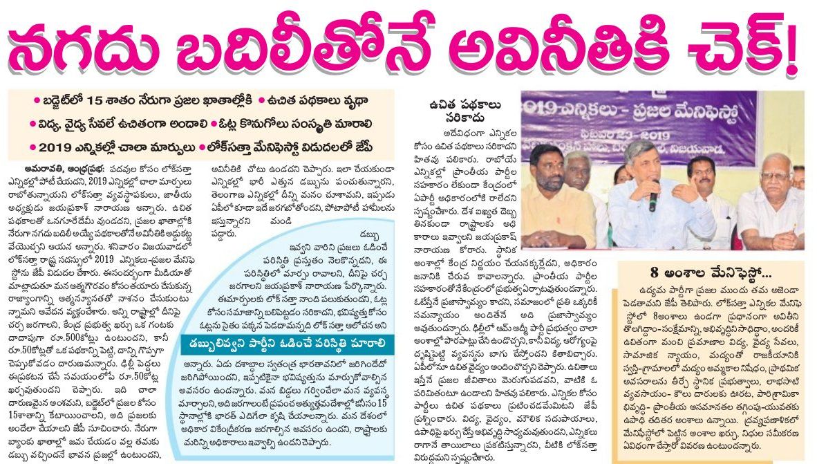 పదవుల కోసం ఎన్నికల్లో లోక్ సత్తా పోటీ చేయదు