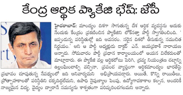 The Lok Satta Party would like parties to pledge themselves against inducing voters with money and liquor and against fielding criminal and corrupt elements as candidates, and follow policies that treat people with respect and not as beggars.