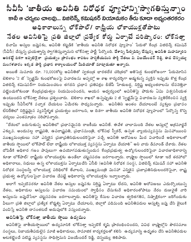 Institutional arrangements necessary for Fighting corruption: Lok Satta (Telugu)