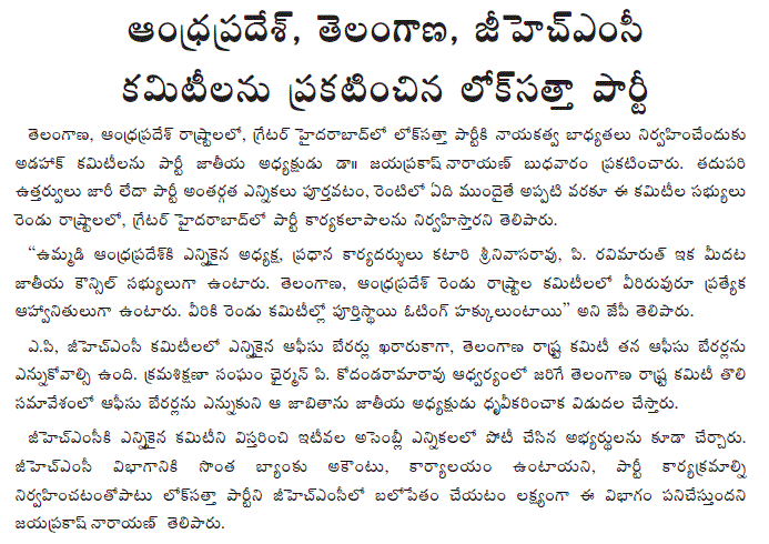 Loksatta leaders Katari Srinivasa Rao, Bandaru Ramamohan Rao and Mrs. N. Saroja Devi took part in the media conference.