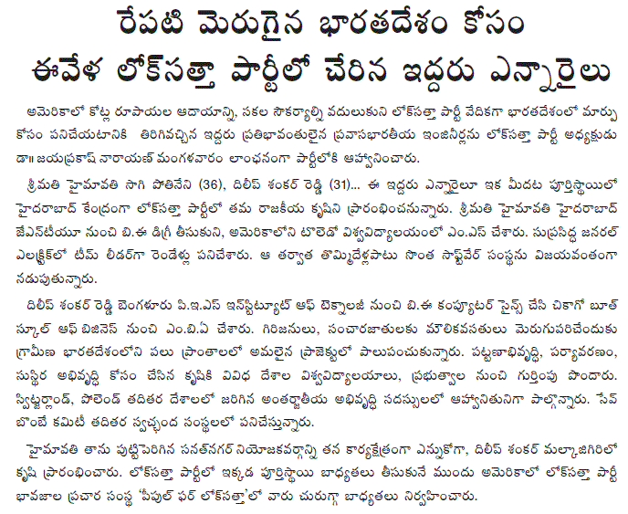 At 5-00 p.m., there will be a public meeting at Sundaraiah Vignana Kendram in Bagh Lingampalli. Dr. JP, K.Nageswar, (M.L.C.), K.Ramachandra Murthy (HMTV Editor-in-Chief) and movie directors S. S. Rajamouli, Tammareddy Bharadhwaja will participate.