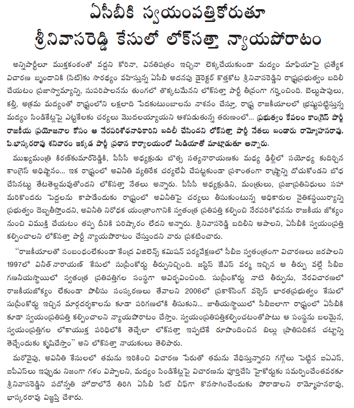 Dr. JP cited a number of instances to drive home his message. People are concerned about drinking water availability in summer but fail to appreciate that the nearly Rs.7000 crore – Rs.8000 crore spent under the National Rural Employment Guarantee Scheme in the State has not been utilized to preserve and augment groundwater. They launch an agitation against an increase in the power tariff but ignore the grave crisis in the energy sector. A Government which could not bring down transmission and distribution losses and prevent wasteful use of electricity is now determined to execute lift irrigation schemes which cost Rs.3 lakh to Rs.4 lakh an acre. If the schemes materialize, the Government will have to spend Rs.20000 crore to Rs.25000 crore a year on their maintenance. The Government will be spending Rs.60,000 an acre under the scheme whereas the income from that piece of land does not exceed Rs.25000. In contrast, he recalled that as Prakasam District Collector he provided irrigation facility for two lakh acres by incurring an expenditure of a mere Rs.45 crore on lift irrigation schemes and bore-wells. Again in the wake of the transfer of an official probing the liquor mafia, the discussion centered on who benefited from it and not on providing autonomy to crime investigation agencies.
