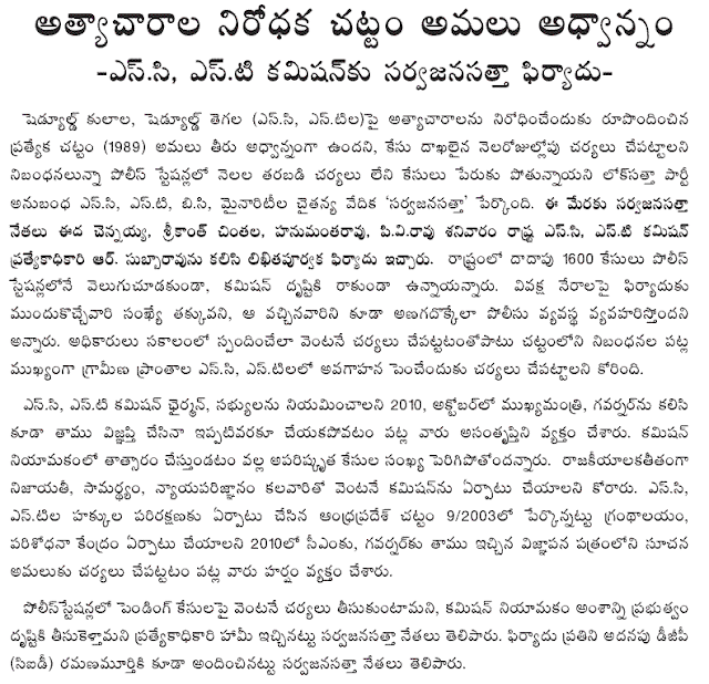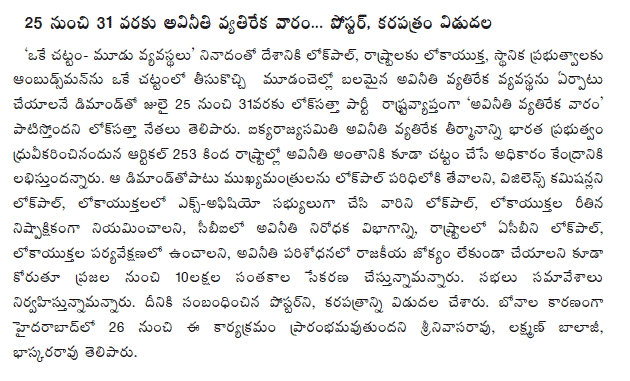 Addressing media, Lok Satta Party leaders Katari Srinivasa Rao, V.Laxman Balaji and P.Bhaskara Rao said, “We should be grateful for small mercies like issuance of caste, income, birth. and death certificates without the need for greasing the palms of officials at the village/mandal levels.”