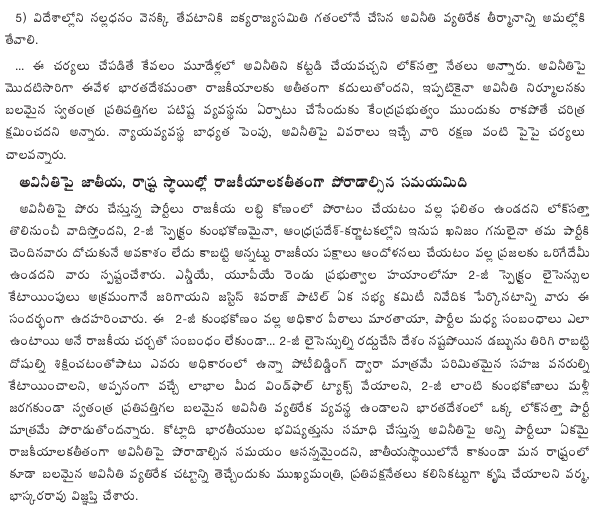 Answering a question, Dr. JP said that if anybody believed that the Government is out to combat corruption, he or she is living in a world of make-believe. Here is a Government which lacks guts to cancel irregular 2G spectrum allocations and recover lost money through a windfall tax.