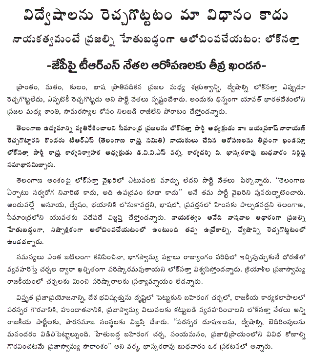 The Lok Satta leaders said that lakhs of tenants could not avail themselves of bank loans, subsidized seeds and other inputs, and crop insurance since their leases are not unregistered. Deprived of bank credit, the tenants, most of them belonging to weaker sections, borrow funds at exorbitant rates from money lenders. They suffer body blows when a natural calamity like drought or cyclone hits them.