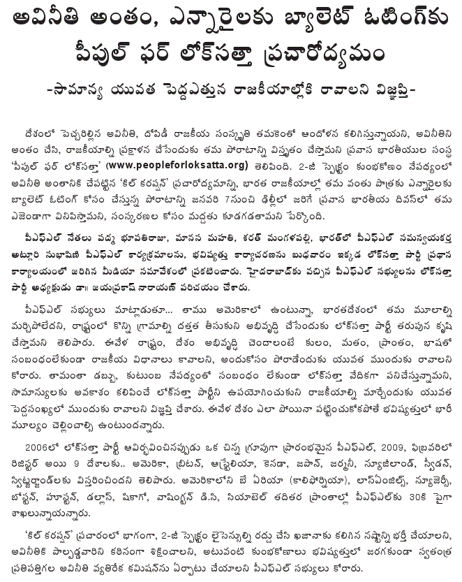People for Lok Satta campaign against 2 G spectrum scam