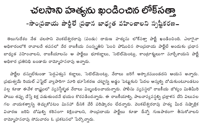 In a media statement, Dr. JP recalled that people have always maintained peace and harmony and it was the political parties, which whipped up prejudice and violence among communities off and on. Today, political parties are showing commendable restraint. That India has remained a secular, democratic country despite occasional problems is a tribute to our freedom fighters and constitutional builders.