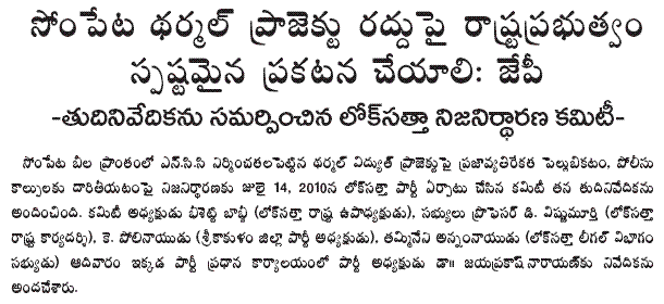 Mr. Varma said that the Lok Satta would strive to work for a rational development policy that does not harm the environment or hurt the interests of the posterity and at the same time contribute to the State’s all-round economic growth and people’s livelihood.