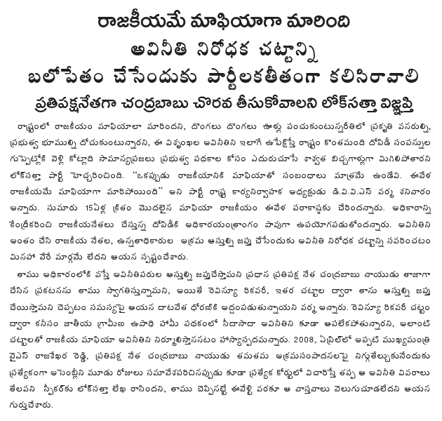 Lok Satta Party today expressed serious concern with the decision taken by the Government of India to include Caste in the Census of 2011. This, if implemented as is, would prove a grave threat to the unity and integrity of the country. It will, particularly, adversely affect the younger generation who want to rise about narrow considerations of caste and creed.
