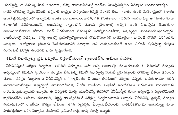 They regretted that the debate on public employment has touched new lows. Public employment is about the public and not employees. Employment is a means to serve the public and not for personal enrichment. Wrangling for appointments in “lucrative” departments like revenue, police, excise, transport and commercial taxes as if public employment is private property is tantamount to condoning corruption, they added.