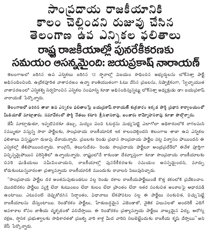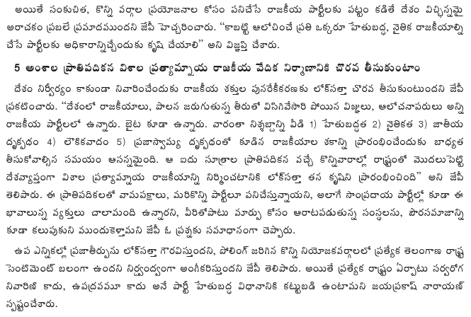 The Lok Satta leaders cautioned students and youth to beware of forces, which have been glorifying suicides as cases of martyrdom. Far from enlisting people’s support with a constructive and imaginative agenda, the forces are whipping up their emotions and driving them to end their lives in desperation. Their conduct borders on crime against society.