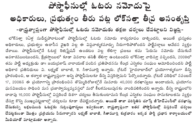 The Lok Satta demanded that the Government convene a meeting of the State-level Bankers’ Committee to ensure that loans were distributed to farmers and tenants as planned, that fodder distribution be taken up on a war footing and that the National Rural Employment Guarantee Scheme is effectively implemented.