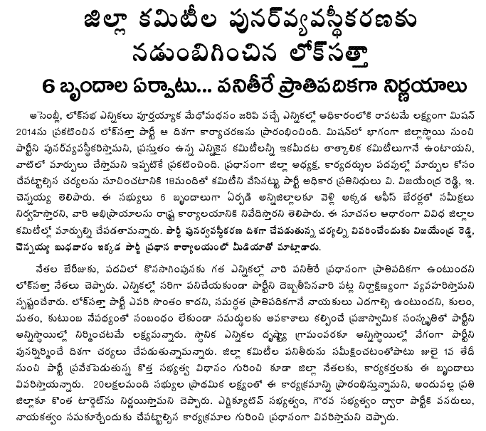 Dr. JP asserted that India could not be transformed unless competent people with leadership qualities entered politics as they did during the freedom movement. People like Jawaharlal Nehru, Dadabhai Naoroji, Chittaranjan Das, Prakasam Pantulu, Subhash Chandra Bose and Vallabhbhai Patel started their political by taking interest in local civic affairs and emerged as national leaders during the freedom struggle. "Since there is now an absence of such leaders, sons and daughters of politicians and criminals have filled the vacuum. People are thirsting for change and waiting for a miracle. But the miracle won't happen unless the educated young and middle class people plunge into politics."