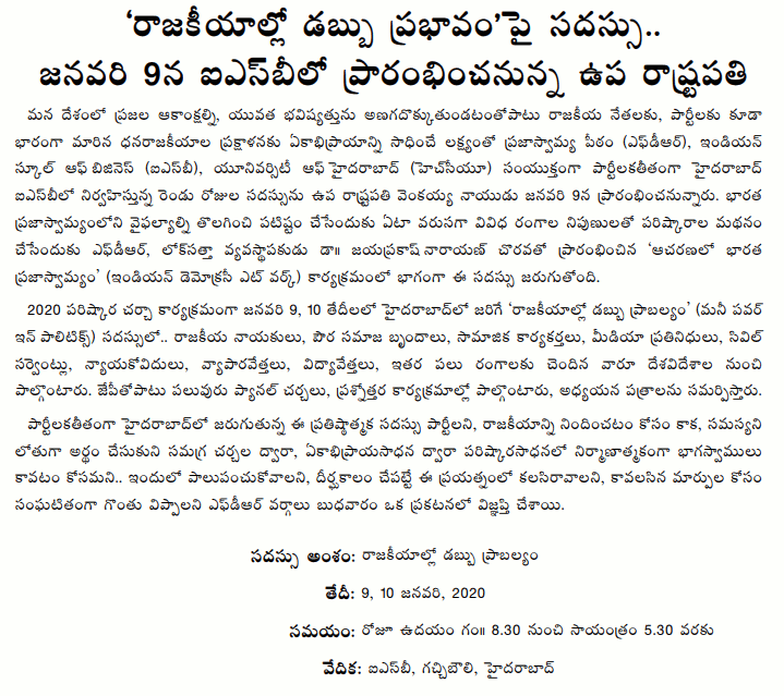 1. A rise in citizen awareness about the dangerous consequences of money flooding into politics and how the politicians who offer money, gifts and allurements to vote in their favour later resort to foul ways to amass wealth would go a long way to curb the money power in politics. For this we need a concerted campaign by the concerned citizens, civil society groups and the Election Commission.